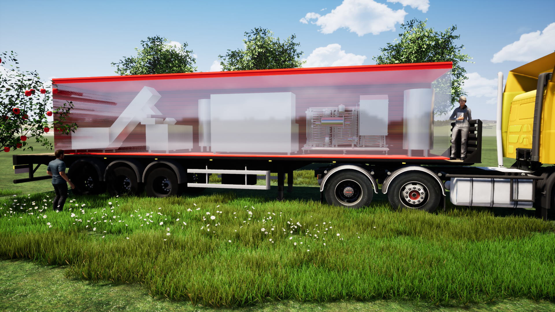 Food Circle 1 develops a mobile fruit processing unit for low oxygen juice extraction and mild preservation. A 3D model of the unit is drafted. A self-lifting system was chosen to be the most adequate mobility system. The operating system and the design of the production line will depend on the capacity range and scaling down the ability of the processing machines.