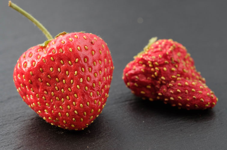 Figure 1: Dried strawberry pre-treated with PEF on the left and not pre-treated on the right (Image: ELEA)