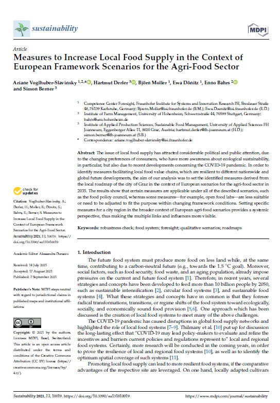 Article: Measures to Increase Local Food Supply in the Context of European Framework Scenarios for the Agri-Food Sector (Sept. 2021)