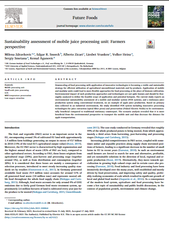 Article: Sustainability assessment of mobile juice processing unit: Farmers perspective (Dec. 2021)