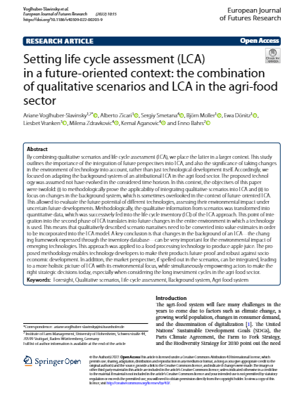 Article: Setting life cycle assessment (LCA) in a future‑oriented context: the combination of qualitative scenarios and LCA in the agri‑food sector (Jun. 2022)
